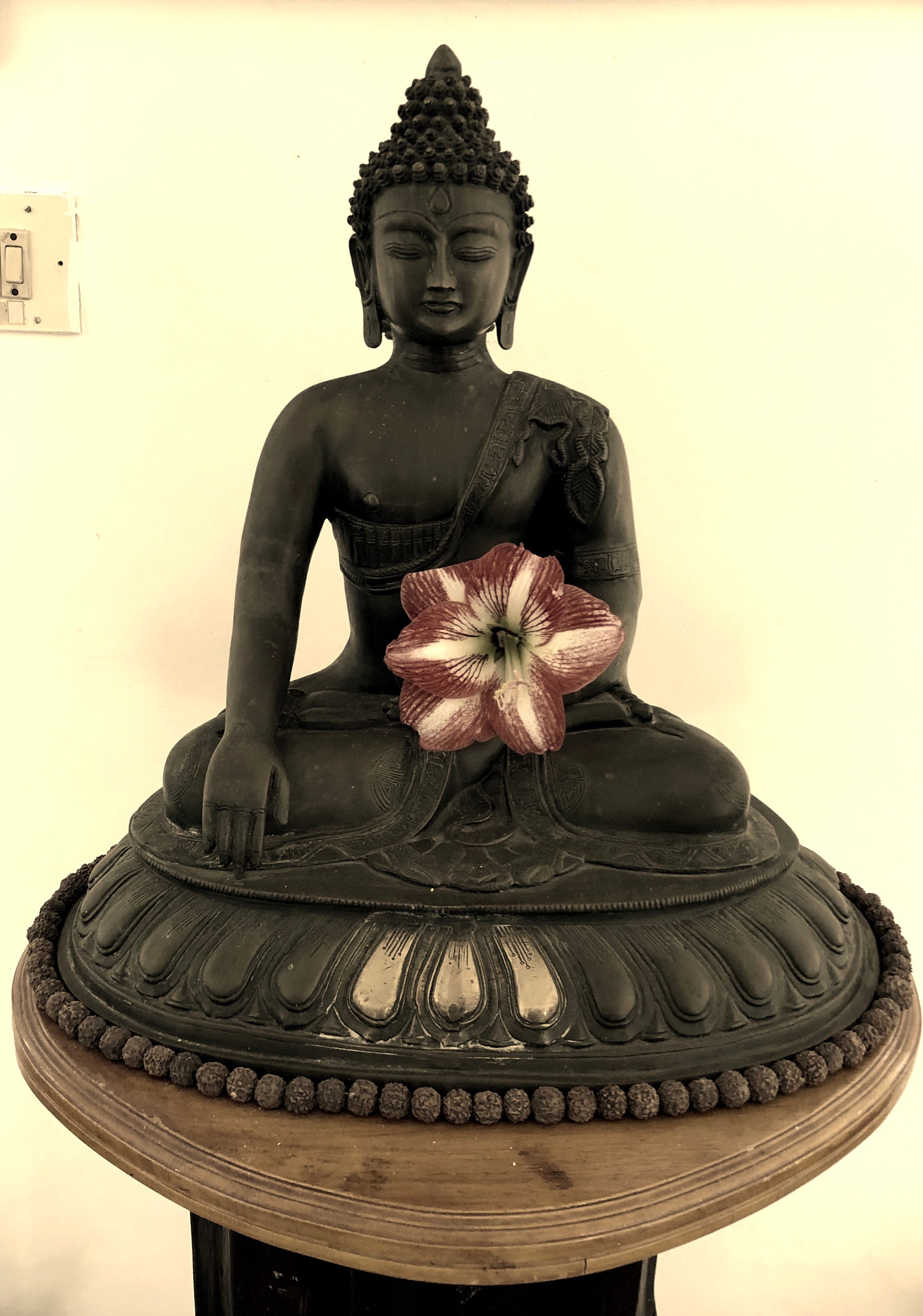 ‘The Budda touching the earth with his right hand and the earth witnessing him is symbolic of humans being rooted and grounded in the earth, matter, body and psyche. Our spiritual realisation dawns only when we acknowledge our rootedness and grounding. Earth implies ‘humus’ in Latin, and ‘humus’ is related to humility. We are the children of earth and our liberation is not apart from the earth, body and matter.’